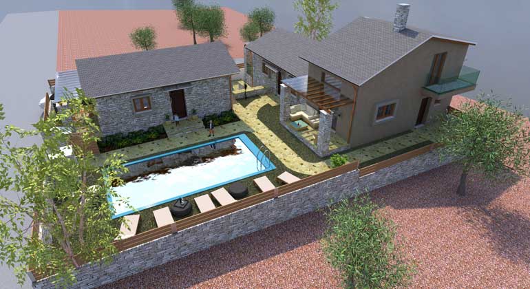 ΤΡΕΙΣ ΚΑΤΟΙΚΙΕΣ ΜΕ ΠΙΣΙΝΑ
